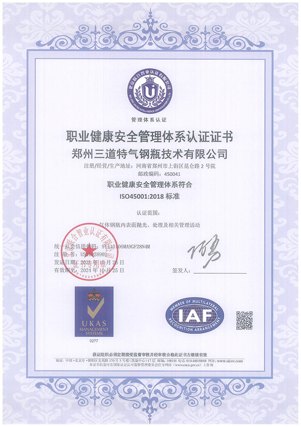 職業健康安全管理體系認證證書